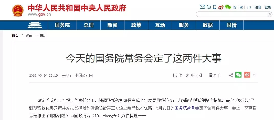確定《政府工作報告》責任分工,強調狠抓落實確保完成全年發(fā)展目標任務;明確增值稅減稅配套措施,決定延續(xù)部分已到期稅收優(yōu)惠政策并對扶貧捐贈和污染防治第三方企業(yè)給予稅收優(yōu)惠。3月20日的國務院常務會定了這兩件大事。會上,李克強總理作出了哪些部署?中國政府網(wǎng)(ID:zhengfu)為你梳理──
