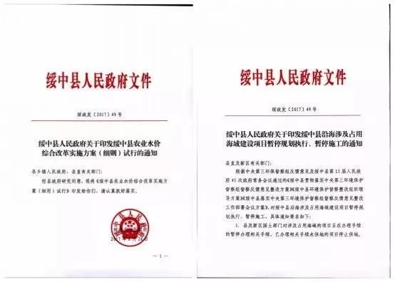 把一份文件復(fù)制粘貼過來,首先記得改文號。文號是一份紅頭文件的臉面,兩份文件湊合一個文號,你想過文件的感受么?遼寧省綏中縣一個綏政發(fā)[2017]49文號,匹配有兩個完全不同的文件。其中一份就屬于臨時編造、應(yīng)對環(huán)保檢查的假文件。而這個假文件背后,庇護(hù)著一個嚴(yán)重違規(guī)的圍填海項目建設(shè)。