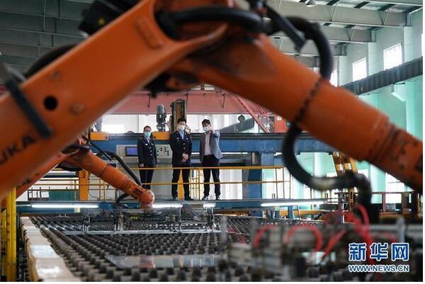 4月23日,河北省沙河市環境保護局執法人員在河北鑫利玻璃有限公司內向企業負責人了解企業生產情況。2019年起,有“中國玻璃城”美譽的河北沙河市啟動了“煙羽消白”工程,先后投入20億元對在產玻璃生產線實施超低排放改造,并結合提升廠區環境、優化產能等措施,削減粉塵、二氧化硫、氮氧化物等污染物排放,推進大氣污染治理。 新華社記者 牟宇 攝