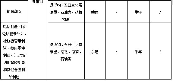 橡膠制品工業排污單位廢水排放監測點位、監測指標及最低監測頻次按照表1執行。