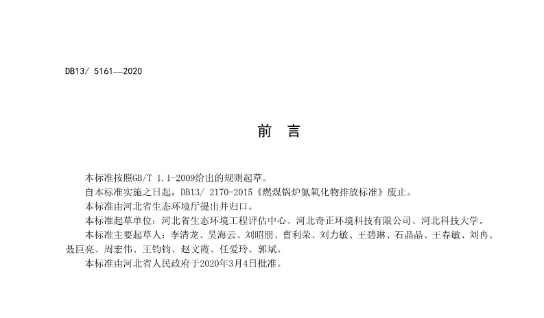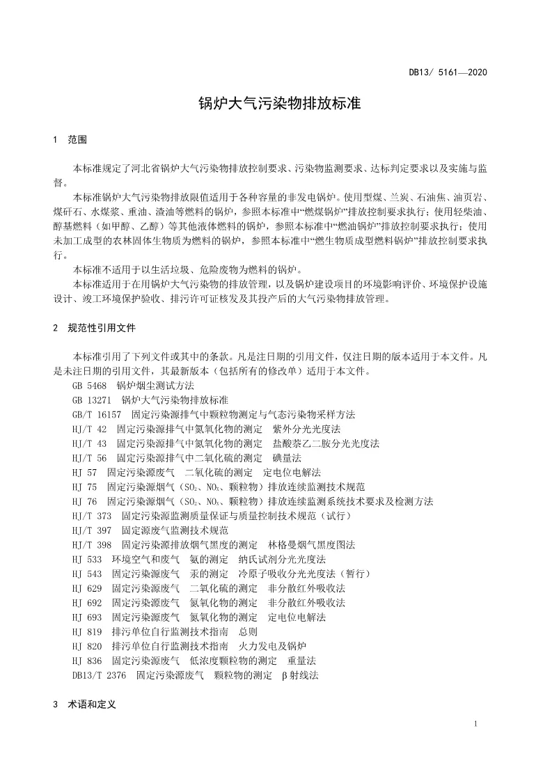 《鍋爐大氣污染物排放標準》DB13_5161-2020——2020.5.1實施