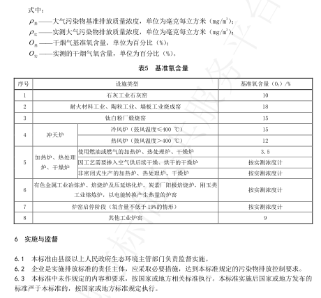 基準(zhǔn)氧含量(O2):耐火材料工業(yè)燒成窯:18/%;剛玉類工業(yè)熔煉爐、以電能轉(zhuǎn)換產(chǎn)生熱量的各類爐窯:按實測濃度計;爐窯啟停階段(氧含量不低于19%的情形):按實測濃度計等。