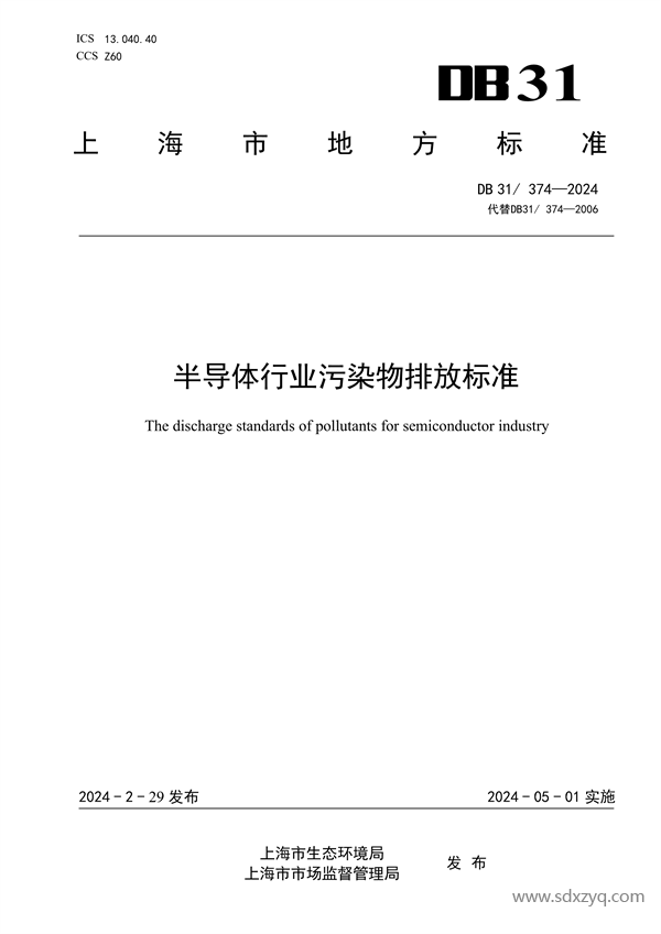 經(jīng)上海市人民政府批準(zhǔn),《半導(dǎo)體行業(yè)污染物排放標(biāo)準(zhǔn)》(DB31/374-2024)為上海市地方污染物排放標(biāo)準(zhǔn),現(xiàn)予以發(fā)布。2024年5月1日起實(shí)施。