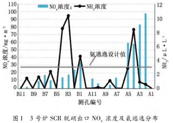 (1)SCR脫硝出口與煙囪入口CEMS顯示得NOx偏差較大,表明SCR入口噴氨不均勻。