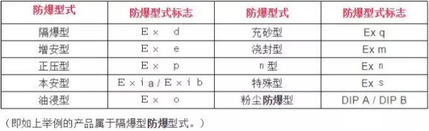 防爆電氣設備按GB 3836標準要求,防爆電氣設備的防爆標志內容包括:防爆型式+設備類別+氣體組別+溫度組別