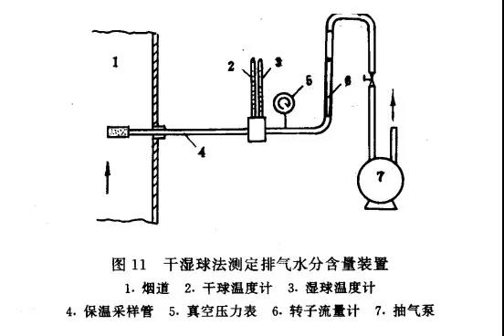 方法原理:使氣體在一定的速度下流經(jīng)干、濕球溫度計。根據(jù)干、濕球溫度計的讀數(shù)和測點處排氣壓力,計算出排氣的水分含量。